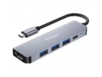 Experimente a praticidade e eficiência do Hub USB-C 3.0 4 Portas HU-C600GY C3Tech, desenhado para simplificar sua vida digital. Compacto e elegante, ele facilita a conexão de múltiplos dispositivos com velocidade e seguranç...