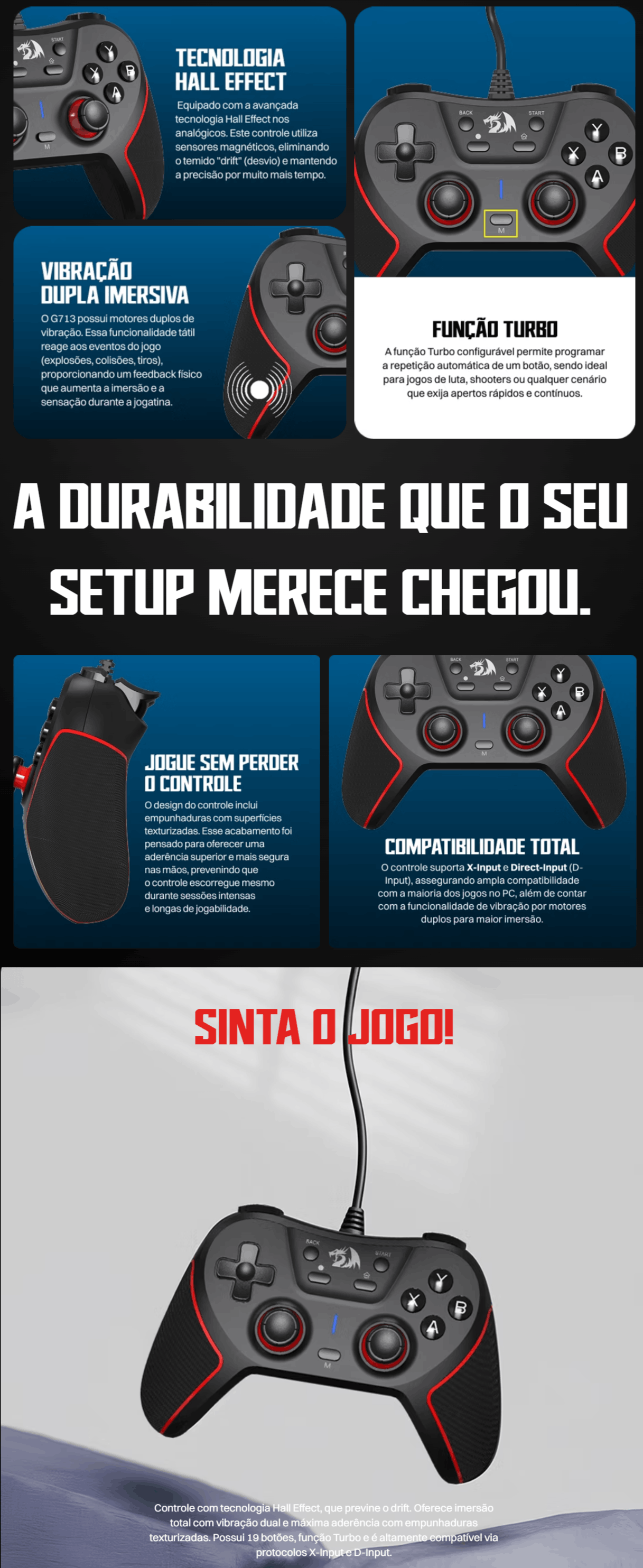 - Funcionalidade de vibração com motores duplos dando mais imersão nos jogos